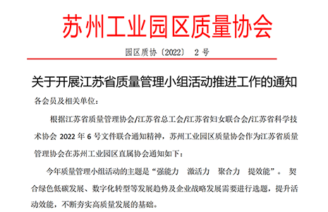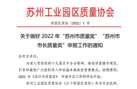 园区质协关于2022苏州市质量奖申报通知
